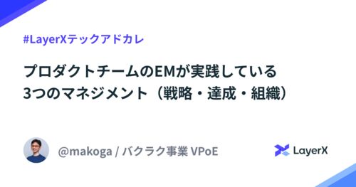 この記事は、LayerX Tech Advent Calendar 2024 の10日目の記事です。 tech.layerx.co.jp こんにちは、すべての経済活動をデジタル化したい @makoga です。 去年エンジニアリングマネージャ(以下、EM)をテーマにした記事は、チームのCapabilityを題材とした…