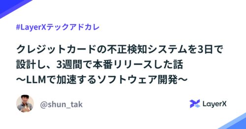 はじめに 背景:クレジットカード不正検知システムとは 3日でDesign Doc 2本、ADR 5本を執筆 3週間で開発し、本番環境にリリース LLM活用による効率化のポイント 目的・要件の整理 要件を満たす技術的オプションの洗い出し・技術調査 PoC実装 ドキュメントの…