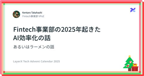 はじめましての人ははじめまして!そうでない人はお久しぶりです! LayerX Fintech事業部でVPoEを担当しています、 takochuu です。 この記事は、LayerX Tech Advent Calendar 2025 の 24 日目の記事です。 23日目は、「バクラク事業部のデータ基盤 2025: 今…